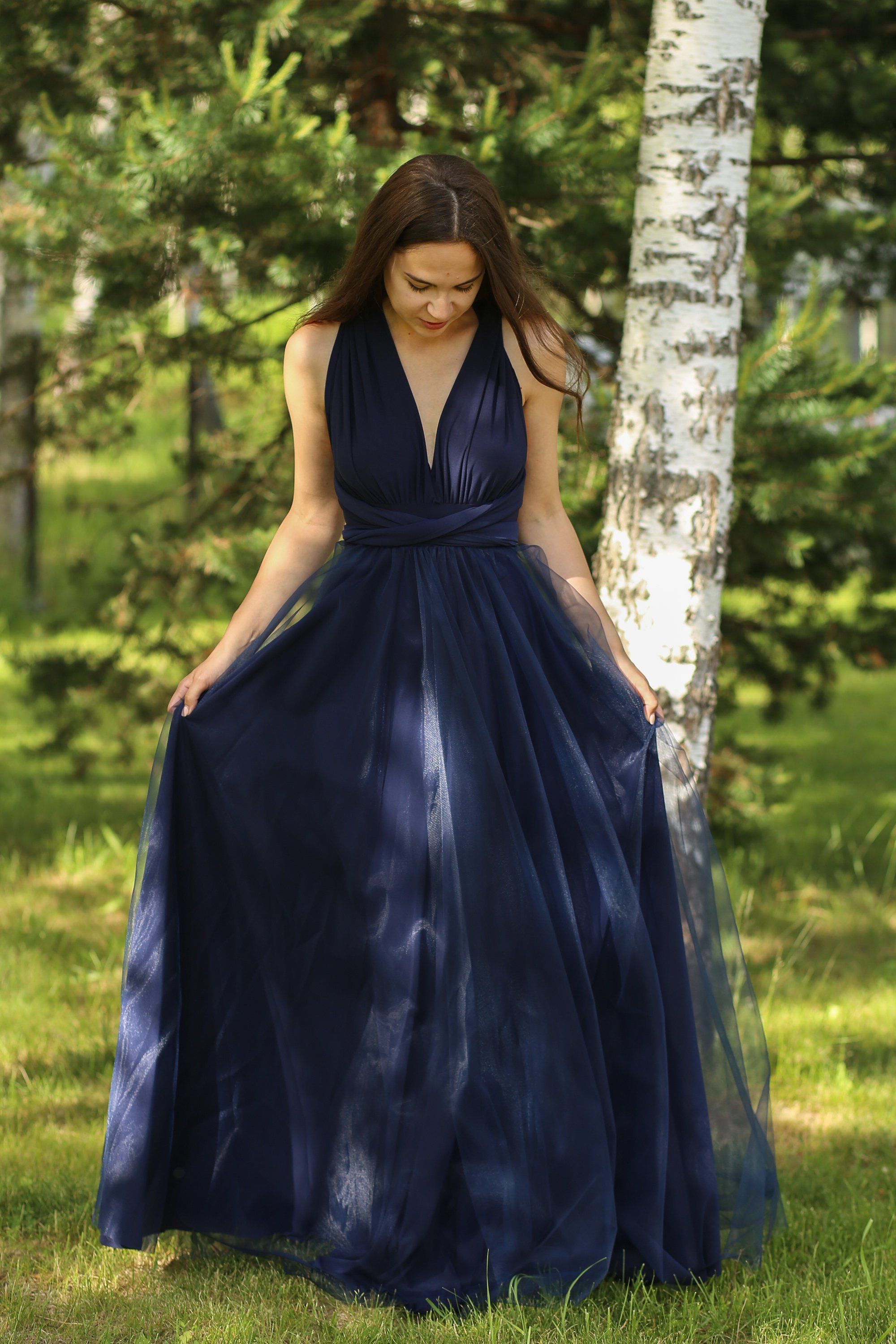 Navy Blue Country 2019 Cheap Bridesmaid Dresses Long V Neck Tulle